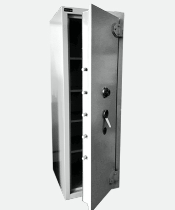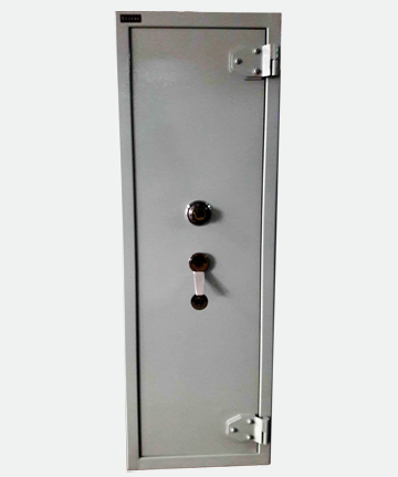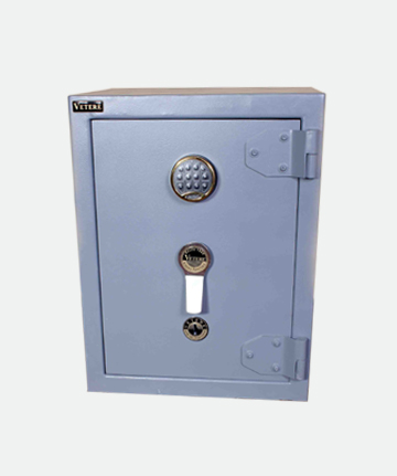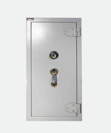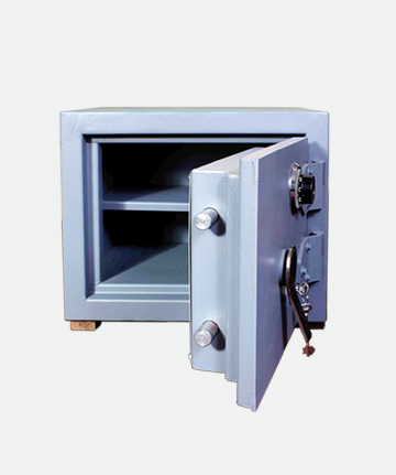 Caja fuerte ignifuga, rellena de material aislante formando un espesor de 40 mm en el casco y 50 mm en la puerta.