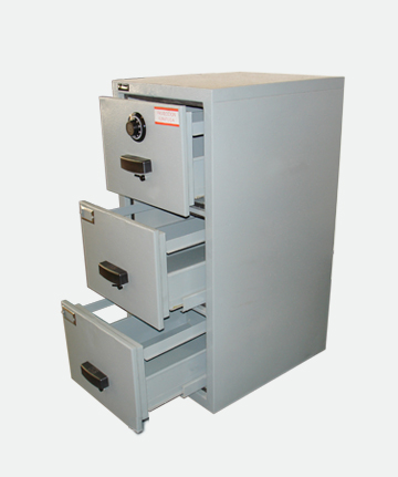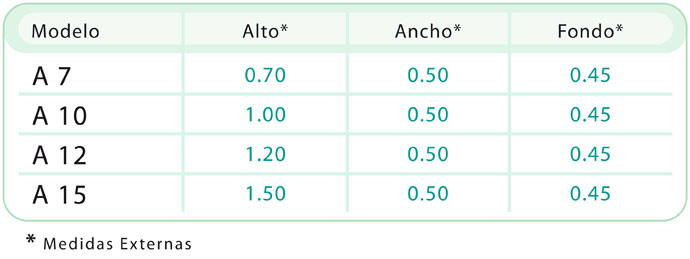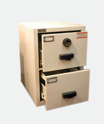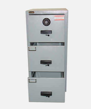 Construido con chapa de acero relleno de material aislante de resistencia al calor por fuego, cajones construidos con doble chapa y rellenos con material aislante y guías para carpetas colgantes, cuenta solo con una cerradura de combinación numérica de hasta un millón de posibles cambios, con posibilidad de adaptarle una cerradura digital.