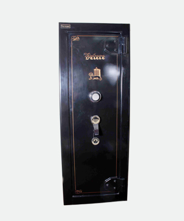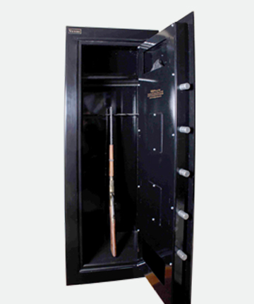 Construido con un casco de 4,7 mm de espesor y puerta de 10 mm, cuenta con cerradura de llave doble paleta y una combinación numérica de hasta un millón de posibles cambios, con posibilidad de adaptarle una cerradura digital, interior con estante para armas largas, espacios en la puerta para guardado.