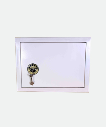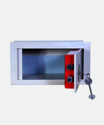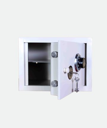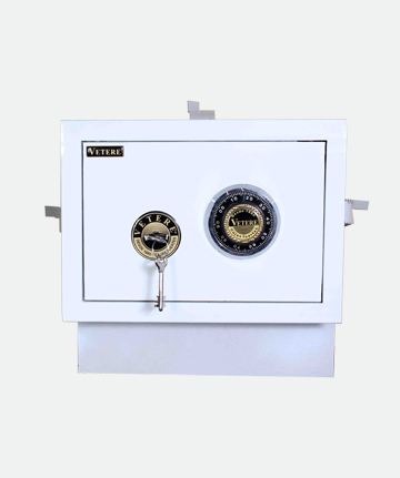 Tesoro construido con un casco de 1,5 mm, fondo de 3 mm y puerta de 10 mm de espesor. Cerraduras de llave ó llave y combinación numérica de hasta un millón de posibles cambios ó cerradura electrónica digital.